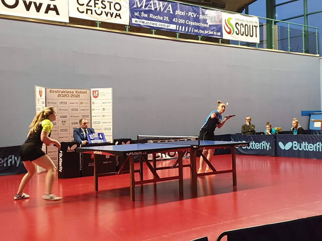 W pierwszej grze liderka częstochowskiego zespołu Tetiana Bilenko pokonała bez straty seta Darię Łuczakowską. W drugim pojedynku Roksana Załomska uległa 0:3 reprezentantce Rumunii – Irinie Ciobanu. W trzeciej partii Sandra Wabik przegrała 1:3 z byłą zawodniczką AZS Częstochowa – Magdaleną Sikorską. Najwięcej emocje przyniósł czwarty pojedynek. Tetiana Bilenko po widowiskowym pojedynku wygrała 3:2 z Iriną Ciobanu. W ostatnim grze Roksana Załomska nie sprostała Darii Łuczakowskiej.